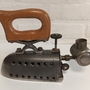Oude strijkijzers. Hiren opgewarmd te worden op een kachel.