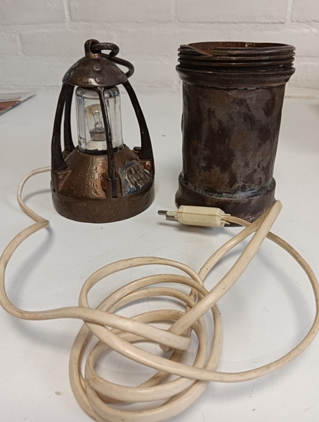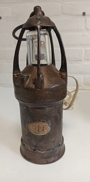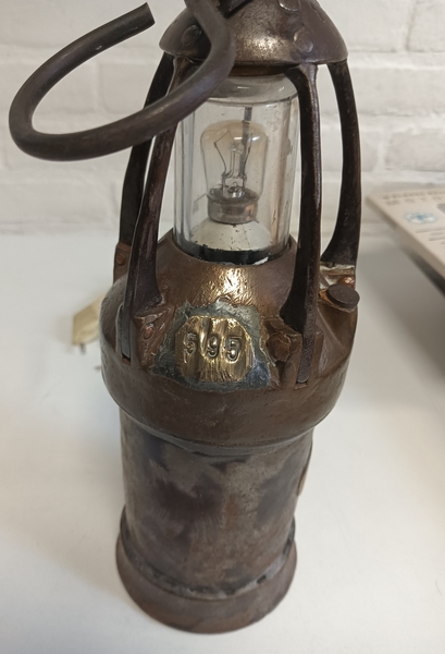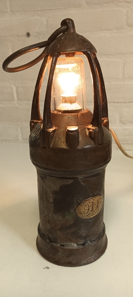 Mijnwerkerslamp ook bekend als potlamp of acculamp. "Spitboogvorm" Deze mijnwerkerslamp werkt "NU" op het Elektriciteit net.